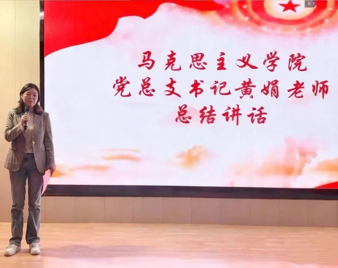 大会最后,学院党总支书记黄娟作总结讲话。她首先肯定了过去一年团学工作所取得的成就,并对加入团学组织的新成员表示热烈欢迎与充分肯定。她指出,新鲜血液的注入为团学工作带来了蓬勃生机,让学院青年工作焕发新活力。未来,全体成员应结合马院学科特色与发展愿景,立足自身优势、融合理实、担当作为,以青春之力赋能学院高质量发展,用实际行动诠释新时代青年的责任担当。