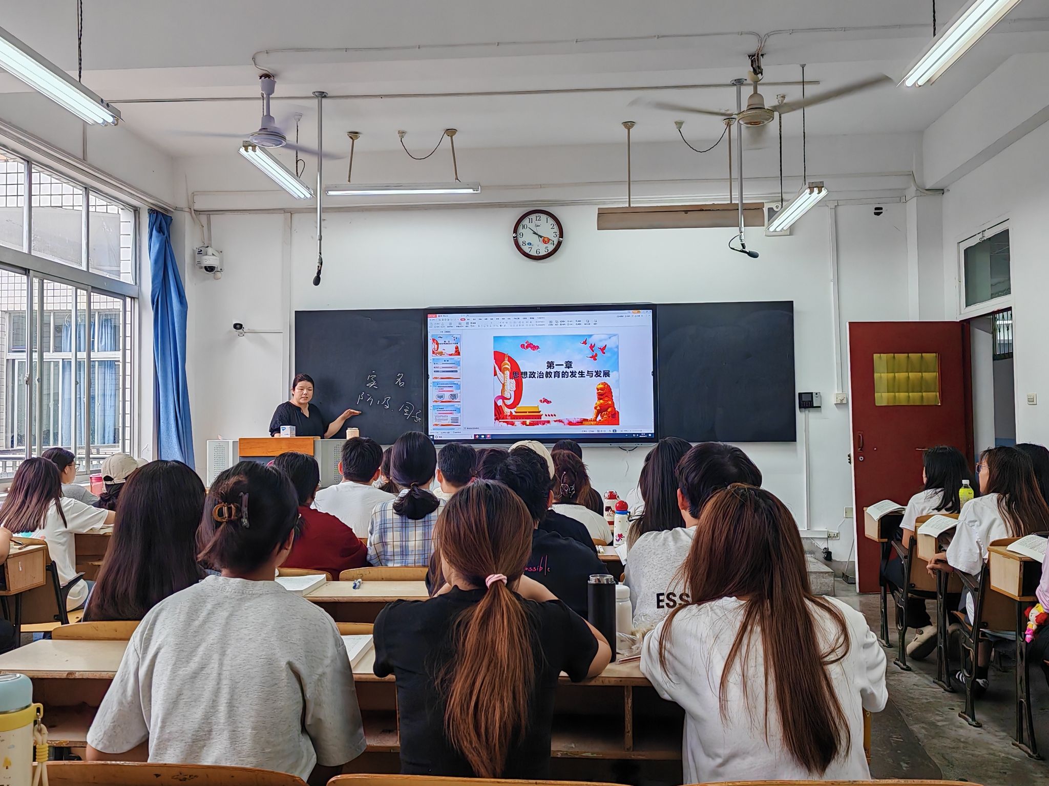 本次活动聚焦课堂教学核心环节,重点走进两位教师的课堂,通过“沉浸式”听课、“精准化”评课,全方位诊断教学情况。其中,骨干教师张晔主讲的《思想政治教育学原理》课程,以完整的教学环节、合理的时间分配与自然的师生互动获得一致认可。课堂上,张老师紧扣课程重难点,通过案例分析、问题引导等方式调动学生参与热情,展现出扎实的教学功底。课后研讨中,教学督导们结合课程实际提出优化建议:一方面建议加强随堂板书的设计与运用,通过结构化板书强化知识逻辑;另一方面针对课程涉及的史学、政治学等交叉学科知识点,建议增加必要的背景解释与内容延展,帮助学生扫清知识盲点,构建完整的知识体系。