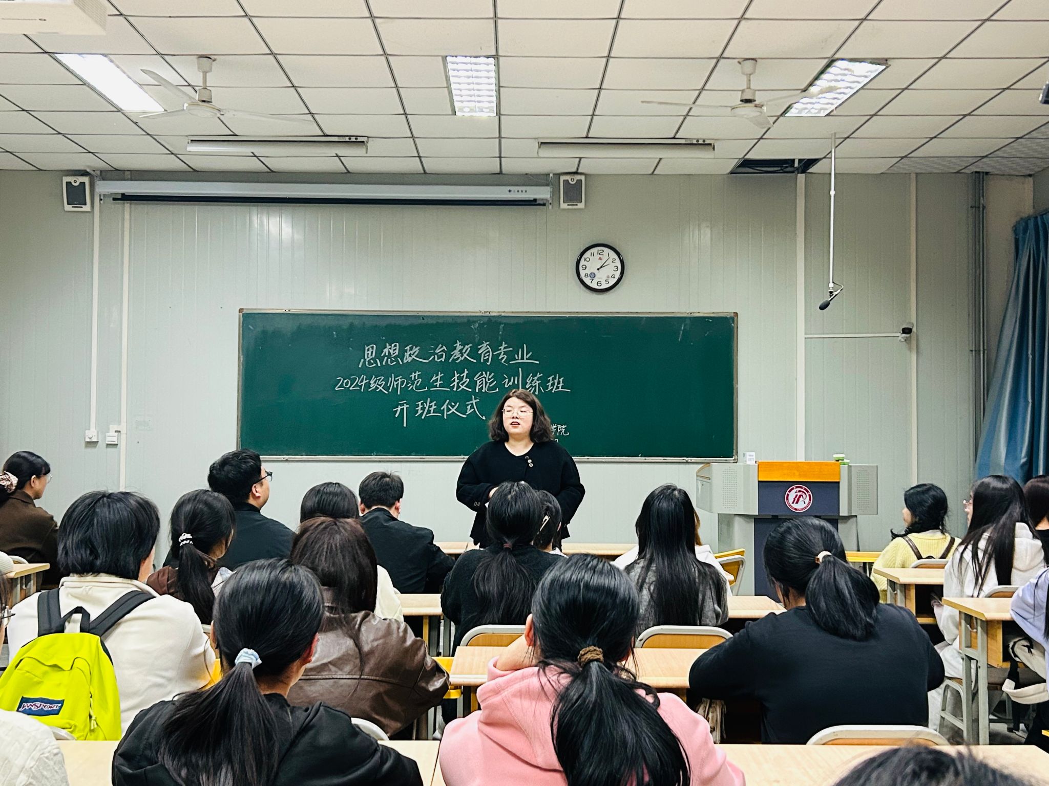 紧接着,房春艳宣布本届训练班正式成立。她强调,师范生是未来教育事业的中坚力量,教学技能是师范生的核心竞争力,通过系统化、实战化训练,帮助师范生补齐技能短板、提升专业素养,为未来走上讲台筑牢根基。