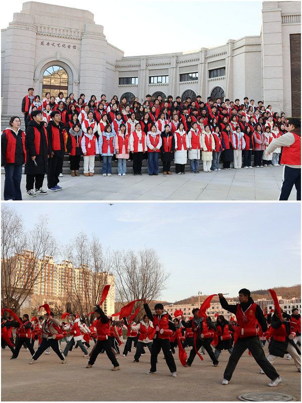 在实地观摩与现场教学的基础上,活动通过多元体验形式,让红色精神入脑入心。6日下午,实践团队走进延安文艺纪念馆、鲁艺旧址,探寻红色文艺的根脉。在延安文艺纪念馆前,同学们齐声合唱《黄河大合唱》,激昂雄壮的歌声展现了我校学子的蓬勃朝气,也表达了对祖国的无限热爱。在鲁艺旧址广场,同学们跟随专业老师学习安塞腰鼓,在欢快的氛围中感受陕北民俗文化的独特魅力,体会革命文艺凝聚人心、鼓舞斗志的强大力量,并现场进行了汇报表演。当晚,同学们观看了红秀《延安延安》,通过精彩的舞台演绎,重温革命年代青年学子投身革命的热血岁月,深刻领会到“到延安去”的时代召唤。