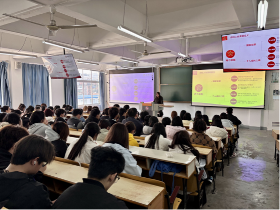 唐璟瑜老师结合鲜活案例与时代形势,深入解读国防建设与国家安全的重要意义,着重强调青年大学生在维护国家主权、安全、发展利益中的责任与担当,引导新生认清时代使命,坚定理想信念,自觉筑牢思想防线。同时,详细解读了大学生应征入伍的重要意义、2026年体检标准、优待政策,鼓励马院学子把个人理想融入强军事业,以青春赴军营、以热血护家国,在国防建设中展现青年担当。