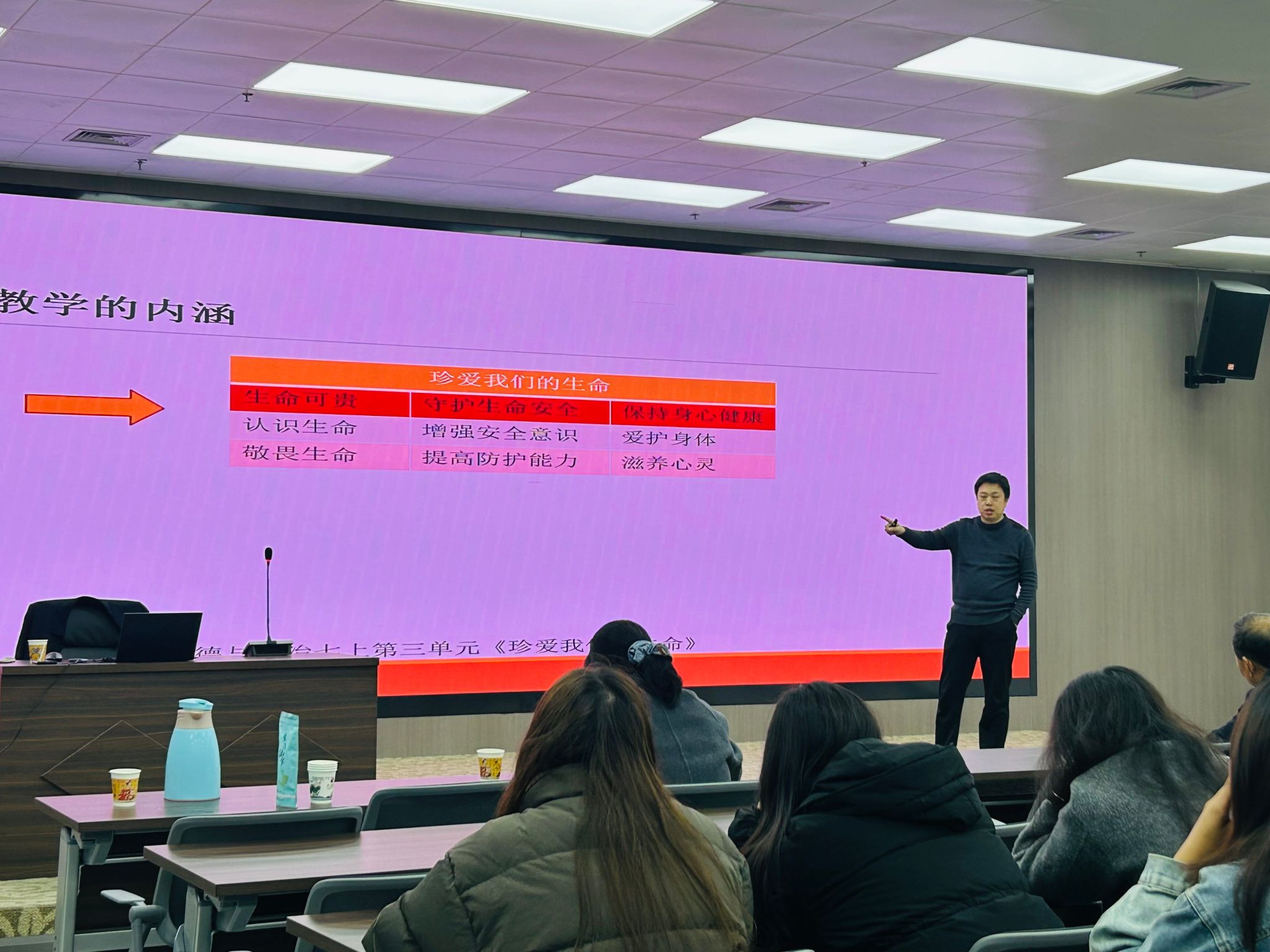 讲座最后,段伟对大单元教学作出两点关键澄清,明确其“大”体现在概括性高、迁移范围广、建构能力强,而非内容多、范围大、时间长,区别于传统教学照搬教材、堆叠零散概念的模式。同时指出大单元教学与传统单元教学并非对立,而是批判继承,在目标上坚持素养本位,设计上遵循逆向逻辑,实现教学评一体化。他还以初中《道德与法治》七年级上册为例,展示以“生命教育”为大主题的大单元教学设计案例,为师生提供直观参考。