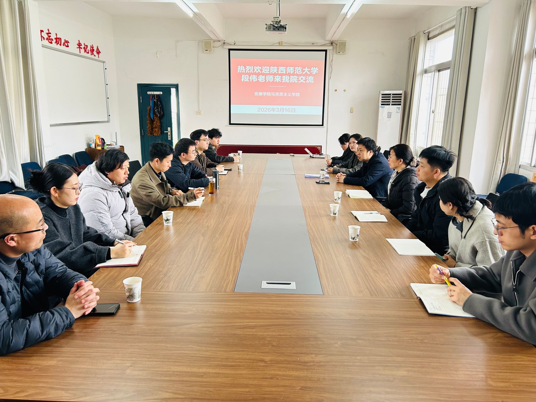 为深化思想政治教育专业内涵建设,提升师范生培养质量,搭建校际交流与经验互鉴平台,3月16日上午,陕西师范大学马克思主义学院副教授段伟应邀莅临我院,在2号行政楼四楼会议室开展座谈交流活动。马克思主义学院副院长房春艳出席座谈会,思想政治教育系全体无课教师参会,系主任王辽主持本次座谈。