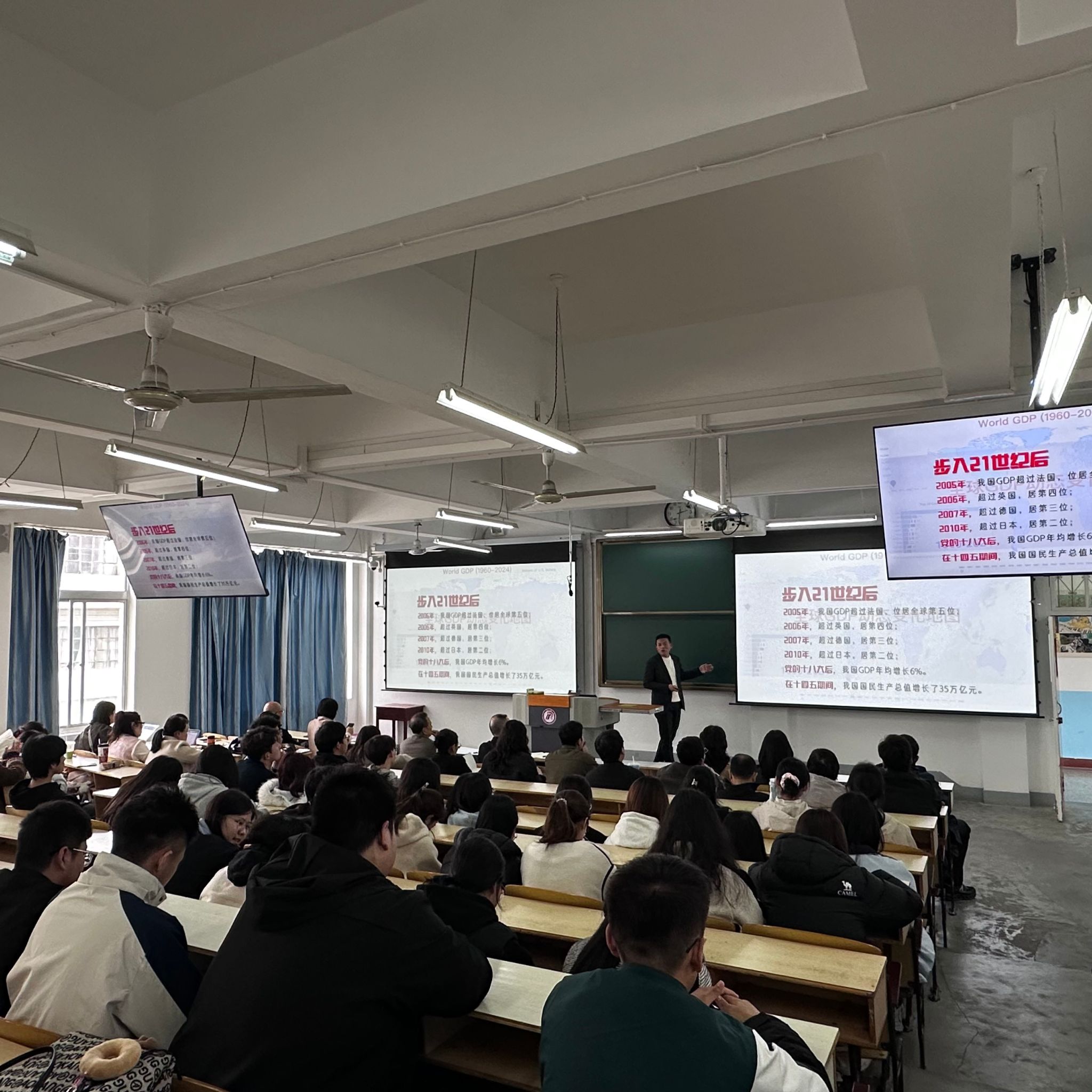 为提升课堂质量、增强育人实效,3 月 25 日下午 2:10,马克思主义学院于江南校区 1510 室举办课堂观摩活动。本次活动特邀宝鸡文理学院傅文老师作“2049 与当代青年学生”专题讲授,宣传部部长田兆杰、学院全体教师及思想政治教育、网络与新媒体专业 90 余名学生参与活动。
