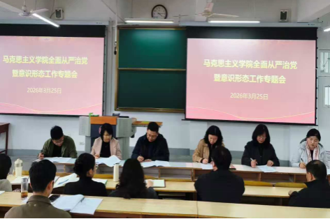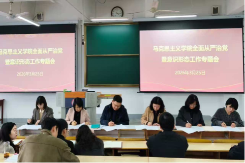 3月25日,马克思主义学院召开全面从严治党暨意识形态工作专题会议,全面总结2025年度学院全面从严治党与意识形态工作情况,科学部署2026年度重点任务。学院领导班子成员及全体党员参加会议,会议由党总支书记黄娟主持。