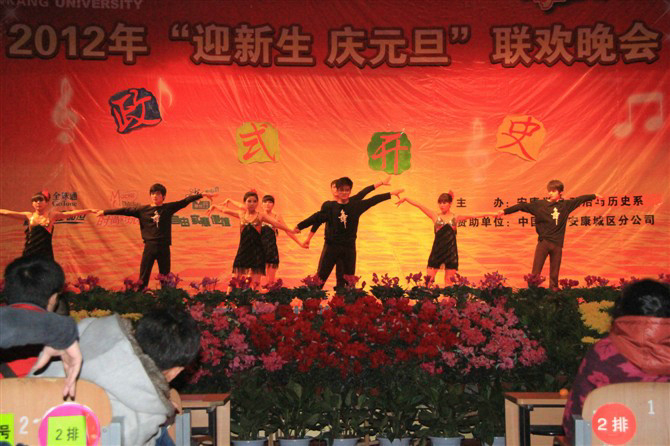 2011年12月13日晚安康学院政治与历史系在西校区大礼堂举办了元旦晚会。学院领导、政史系师生及其他系的同学观看了晚会。