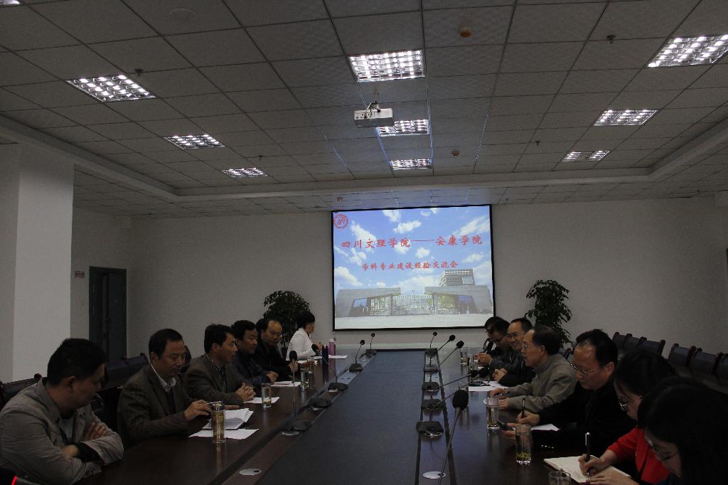 4月20日上午9点在我校江北校区逸夫科技楼九楼会议室召开了题为“四川文理学院—安康学院学科专业建设交流” 座谈会,校党委副书记胡鸿晓,教务处长钟生海,系主任何家理,系党总支书记谢安国,系副主任吴亚娥、单林波,教研室主任罗春霞、项晓静、李峰等参加了座谈会。