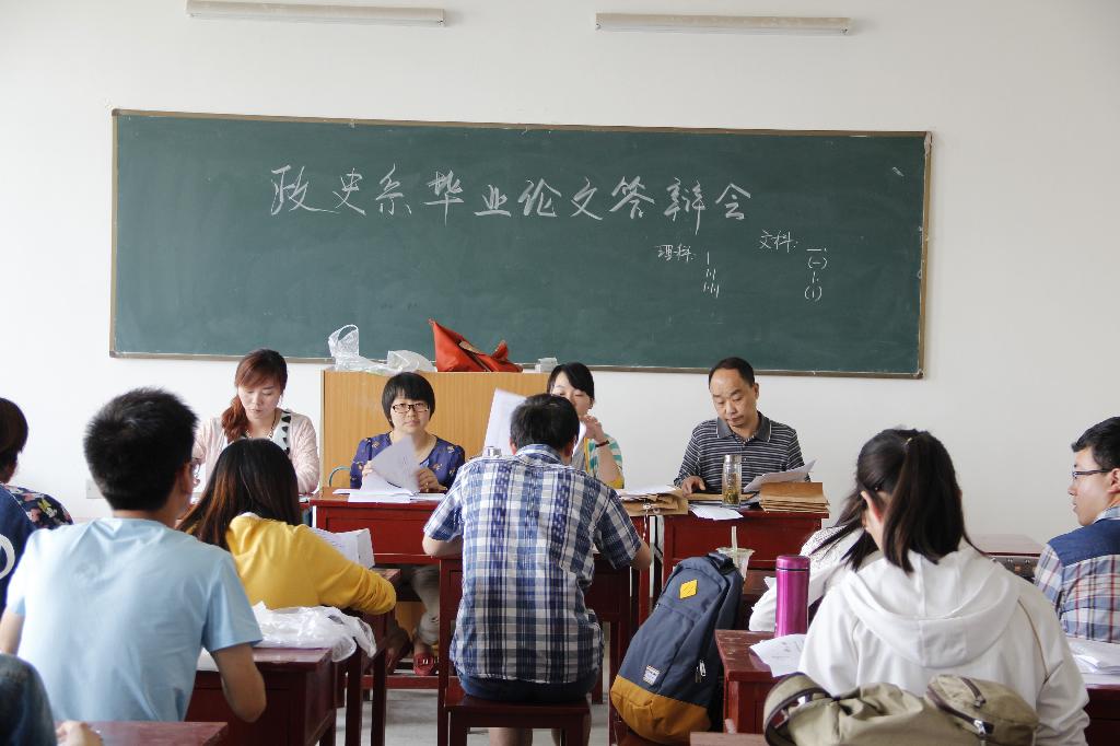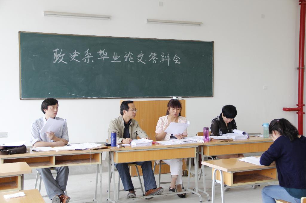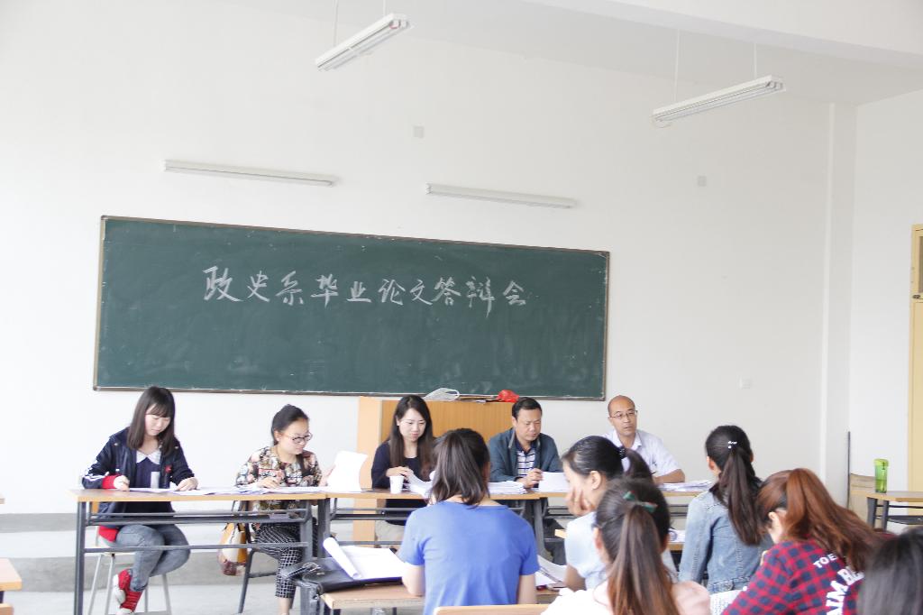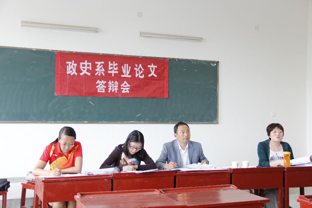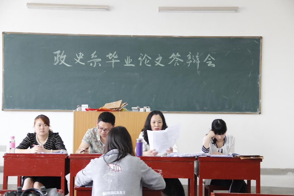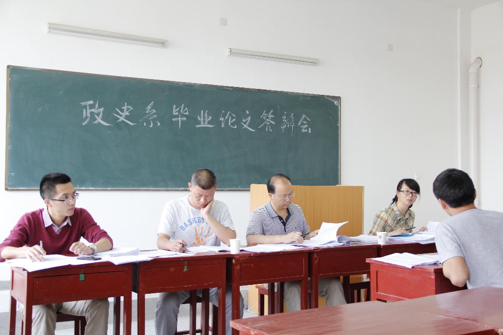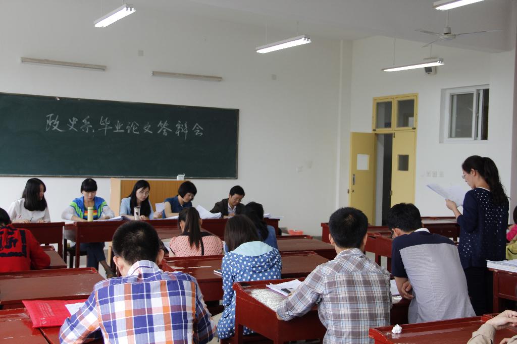 2015年5月23日8:30——18:00,我系在江北校区1号教学楼1501、1502、1503、1504、1505、1506、1507、1510教室举行了2015届本科毕业生论文答辩会。本次答辩会共分八个小组,答辩委员会主任由政史系主任何家理教授担任,政史系党总支书记谢安国教授、调研员吴大康副教授、系副主任吴亚娥副教授、系副主任单林波、教研室主任陈绍斌副教授、教研室主任项晓静副教授、教研室主任罗春霞副教授、教研室主任刘全玉等担任答辩委员会委员。
