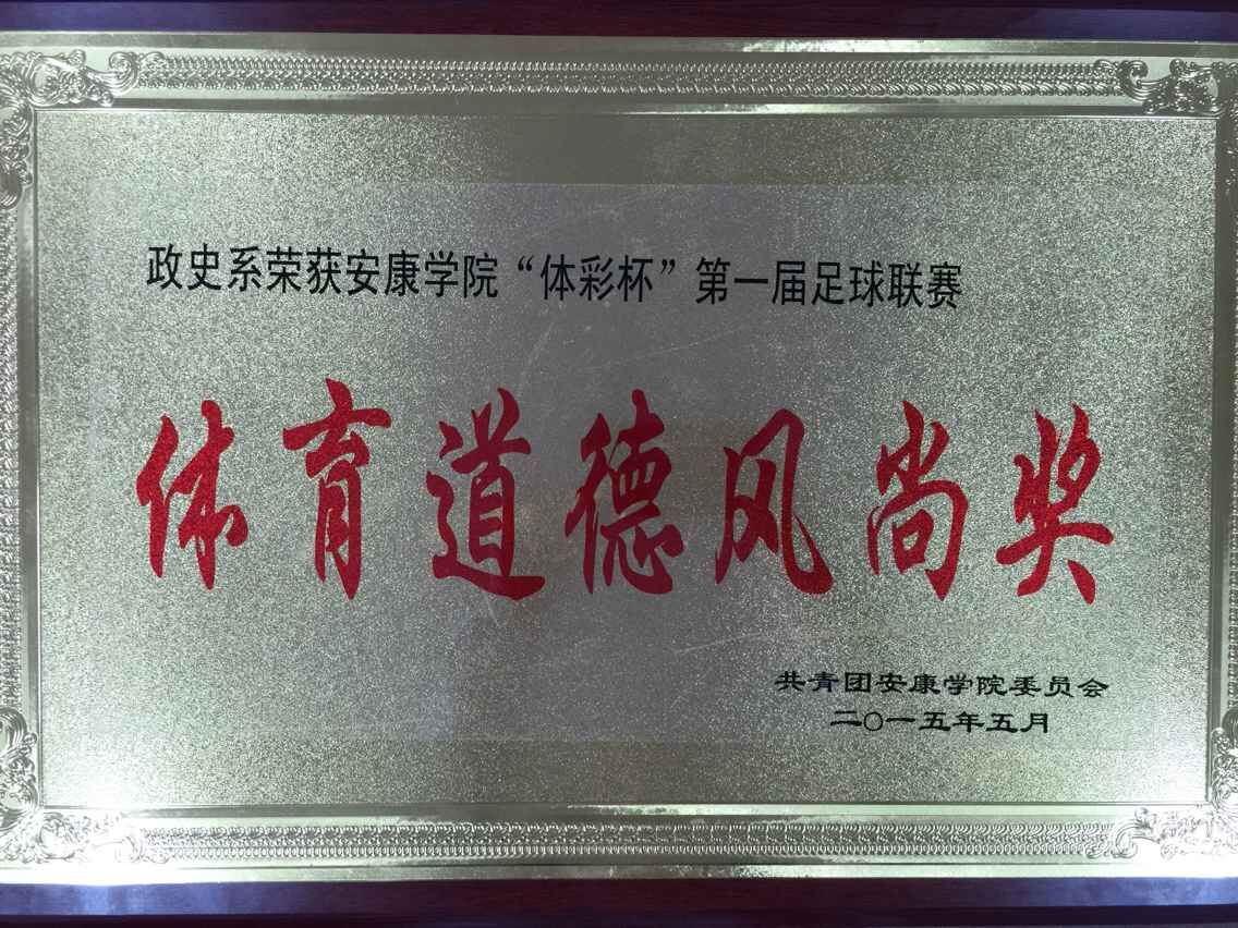我系在安康学院首届“体彩杯”足球联赛中荣获“体育道德风尚奖”称号