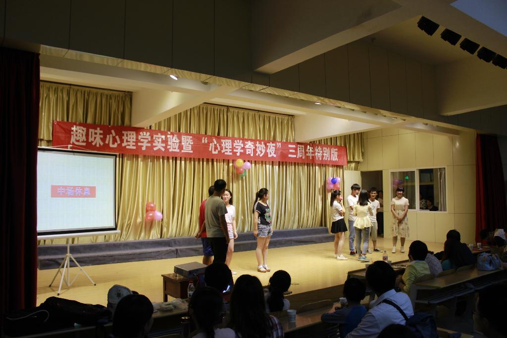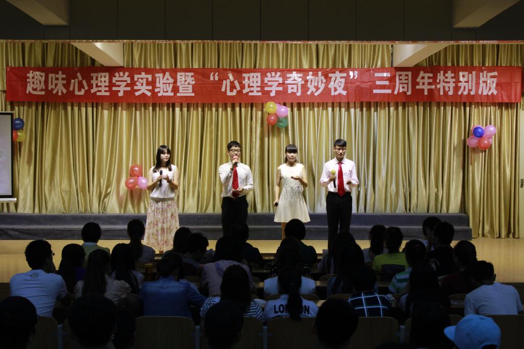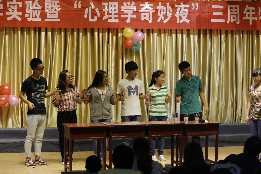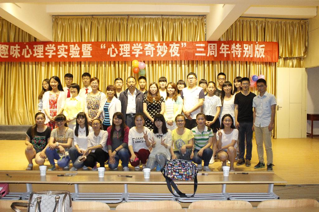 “心理学奇妙夜”活动由郭晓蓓老师负责指导,由社会工作专业学生结合《社会心理学》课程负责实施;此前已于2013、2014年相继成功举办了两届,今年的第三届还得到了学校“大学生心理健康教育文化节”活动的大力支持。