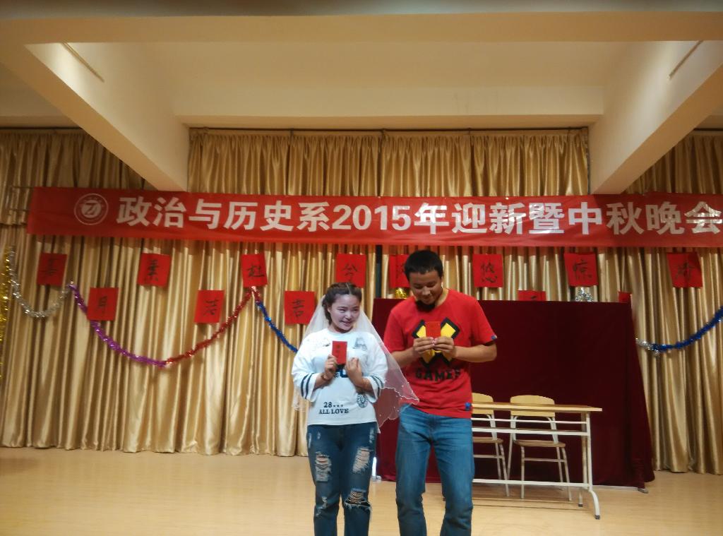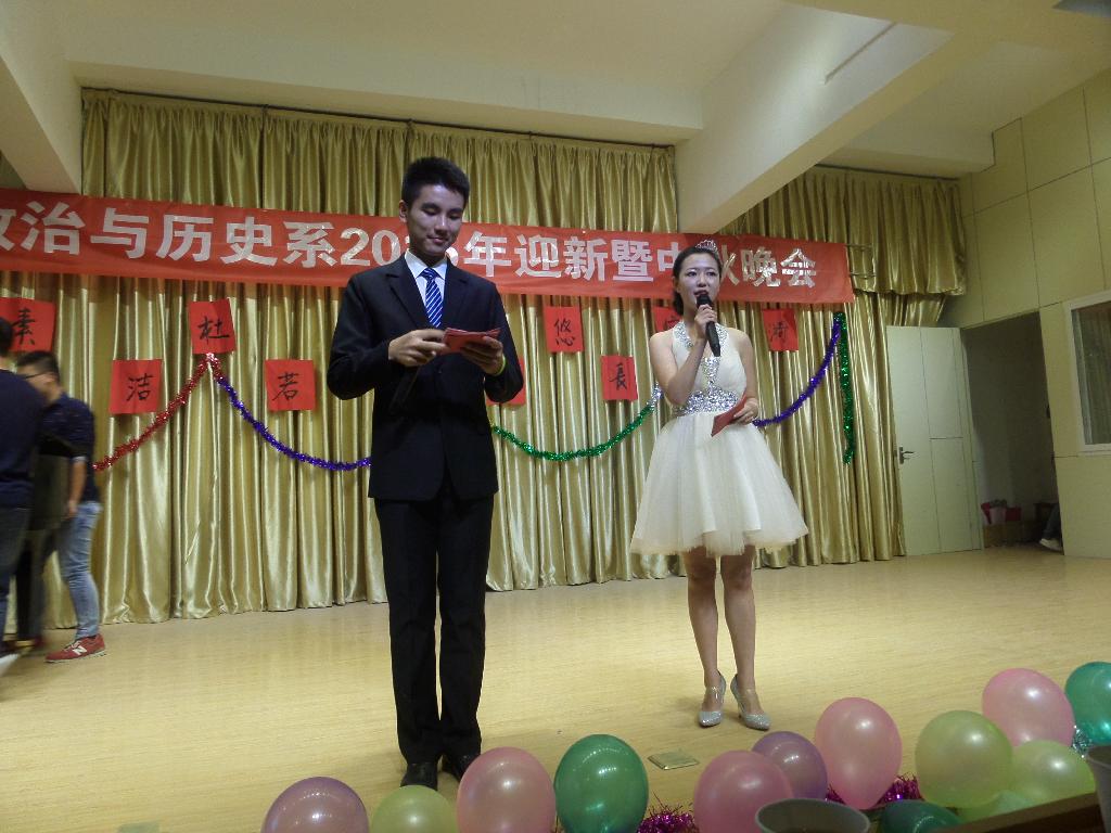 2015年9月27日晚19:30,政治与历史系在一号教学楼1401小礼堂成功举办了“嘉月素洁杜若兮,汉水悠长惊鸿漪”2015级迎新暨中秋晚会,出席本次晚会的有政治与历史系单林波老师,郑治国老师,雷红霞老师,张格瑄老师,安康学院学生会副主席史航,史鉴学社社长王平以及各系代表以及我系2015级全体新生。