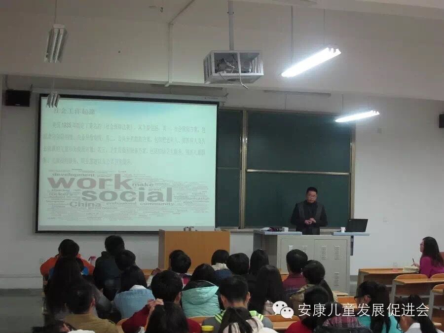 为了让我系社会工作专业学生清楚的认识到专业优势,11月20日下午,我系特邀安康儿童发展会的张强总干事在江北校区1116教室开展社会工作专业知识与就业前景指导讲座,我系社会工作专业全体学生及部分教师参加此次讲座。
