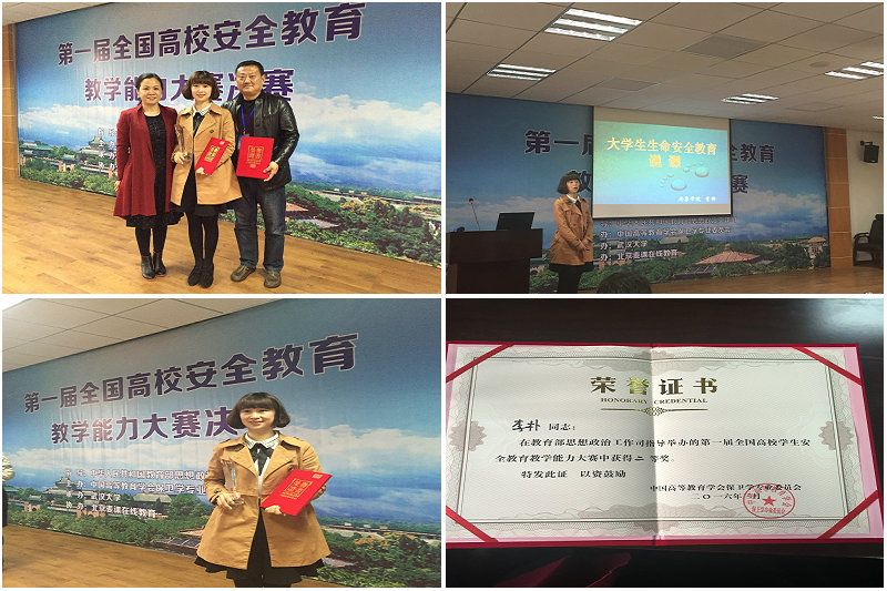 第一届全国高校学生安全教育教学能力大赛3月21日至22日在武汉大学进行。我院李朴老师荣获二等奖。学校保卫处张文华处长、我院副院长吴亚娥全程观摩大赛。