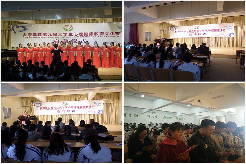 启动仪式由李光梓老师主持。在艺术学院合唱团带来《感恩的心》歌唱表演中此次活动拉开帷幕。学校党委副书记胡鸿晓教授进行开幕致辞,并说明此次安康学院第九届大学生心理健康教育文化节的活动意义,鼓励同学们积极参与其中。随后孙茗老师说明心理咨询的作用,帮助同学们正确认识自己。黄娟老师阐述了此次活动的策划和流程。学生代表政治与社会发展学院2015级社会工作1班的梁潇予同学做了倡议发言。仪式最后,全体人员进行安康学院第九届大学生心理健康教育文化节启动仪式宣誓,院系领导代表进行签名并为各院系同学颁发宣传手册。