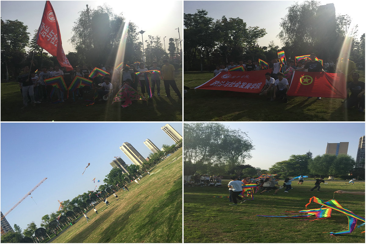2016年5月3日下午,五四青年节即将到来的前夕,政治与社会发展学院在安康市高新运动公园成功的举办了放风筝大赛,此次活动由政治与社会发展学院团总支负责,学生会协办,政治与社会发展学院全体学生参与。 本次活动以风筝为媒介,向广大同学宣传社会主义核心价值观及科技文化节知识。活动前期经过了近半个月的准备,活动当天,我院学生热情参与,活动场面热烈温馨,绿色草坪上奔跑着青春脚步,蔚蓝的天空下飘扬着亮丽的风筝。 本次活动有力促进了我院学生之间的交流合作,丰富了课余文化生活。此次活动的举行,也是“三走活动”的继续发热,让学生走出宿舍,走下网络,走向操场并且体验大自然的美好。我们放飞青春的美好和希望,我们祝愿明天更加辉煌灿烂。