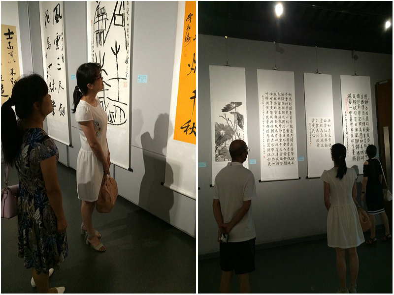 我院教师在党总支书记冯丰收的带领下,于7月5日上午分两批参观了书画展。