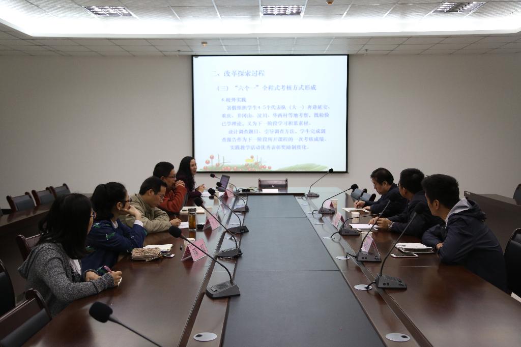 2016年10月13日西安航空学院思政部主任程健康、副主任张雷一行四人考察学习我校“思政课”教学和考核改革。