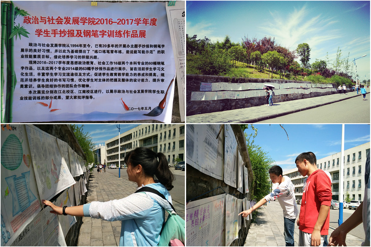 为了体现专业特色,突出培养和提高学生的综合素质。政治与社会发展学院于2017年5月22日-2016年5月25日,在江北和江南校区分别了举办2016—2017学年钢笔字和手抄报展览。