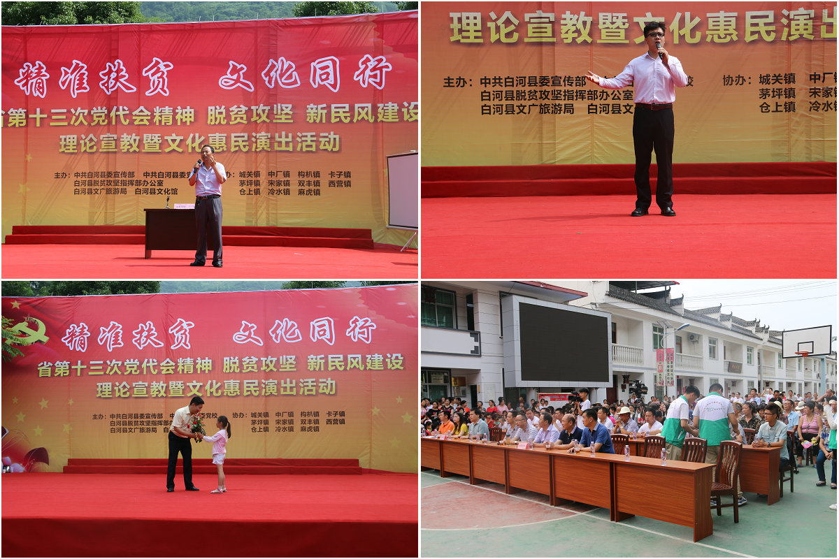 我校白河县扶贫工作队全程参与助力了白河县本次扶贫工作。这是我校第一批与白河县结对帮扶的22个项目中的1号项目白河县“精神扶贫”宣讲项目。宣讲团负责人何家理教授在中厂镇石梯村为全体村民开展的第1场《通向脱贫的道路——自强+帮扶》为主题的宣讲活动。他用群众喜闻乐见的语言和丰富详实的案例,从贫困产生的原因、解决贫困产生的办法(中央提出的五个“一批”)、正确理解贫困人口精准识别建档政策、通向脱贫的道路(自强+帮扶)四个方面进行了讲解。从哲学上内因与外因的辩证关系出发,说明尽管造成贫困的原因有自然条件差、人口文化水平低、疾病、上学等多种多样,但是通向脱贫的道路应是自强+帮扶。政府等社会各方面的帮扶只是外因,贫困户个人主观努力才是内因,单靠外力的帮扶而贫困户个人主观上如果不努力,则是无法脱贫致富的。白河县的“三苦精神”证明了主观努力可以改变贫穷面貌,白河高级中学自安康市2010年设立励志奖以来,保持了县级中学没有中断励志奖的记录,7年来有12名学生获得安康市励志奖,考取清华和北大各两名。中等偏下的生源考出如此好的成绩,正是学生苦学(内因),教师苦教(外因)共同起作用的结果。如果学生不努力,教师再苦教也是无用的,脱贫致富的道理也一样。