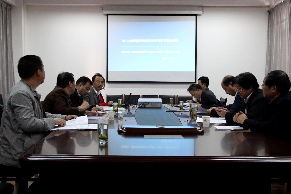 11月7日下午3:50,在安康学院江南校区图书馆六楼陕南民间文化研究中心,举行了我院院长何家理教授主持的2017年陕西省高等教育教学改革研究项目“西部地区国培计划与送教下乡项目一体化研究与实践”开题会。参加会议的有陕西师范大学熊正英教授、宝鸡文理学院党天才教授、陕西科技大学董文宾教授、安康学院教务副处长杨哲教授、安康学院教务处胡景乾研究员等5名专家组成的评议专家小组和课题组安康学院政社学院院长何家理教授,房春艳讲师、安康学院继续教育学院院长谯延富,陈孝记副教授、安康市汉滨初级中学副校长李鹏等5名成员。开题会由熊正英主持。