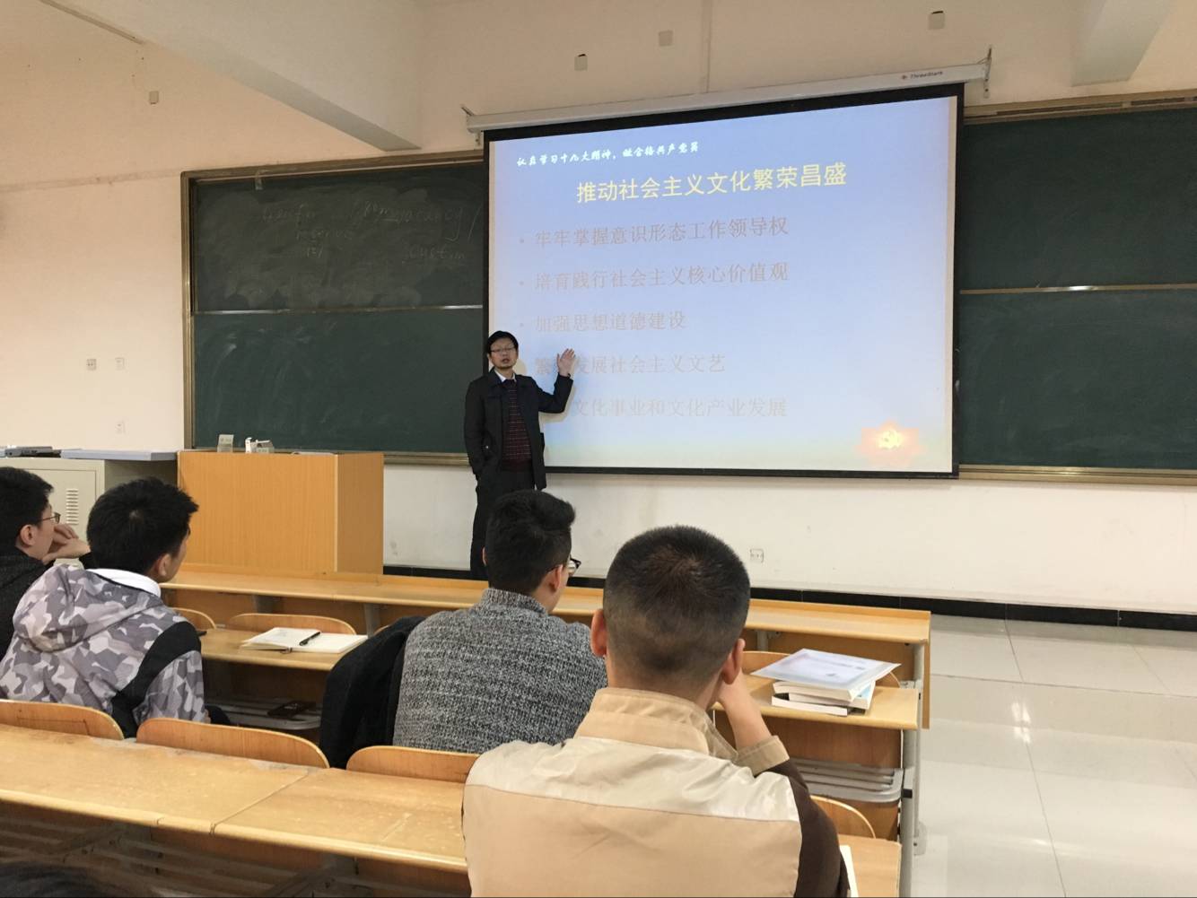 陈卓老师通过对十九大报告的详细解读,指出十九大会议主题为不忘初心,牢记使命,高举中国特色社会主义伟大旗帜,决胜全面建成小康社会,夺取新时代中国特色社会主义伟大胜利,要为实现中华民族伟大复兴的中国梦不懈奋斗。其次解读了报告中提到的四个伟大、五个自觉、四个自信。指出新时代中国特色社会思想里的八个明确,其中明确中国特色社会主义最本质的特征是中国共产党的领导。以及基本方略中的十四个坚持,从经济、政治、文化、民生等方面指明了我国下一阶段要实现的目标。最后,陈卓老师带领着入党积极分子及发展对象共同学习《学生党员发展手册》。对手册里的十处修改,以及入党积极分子的确认和培养条件,入党所需的必要程序进行一一说明。