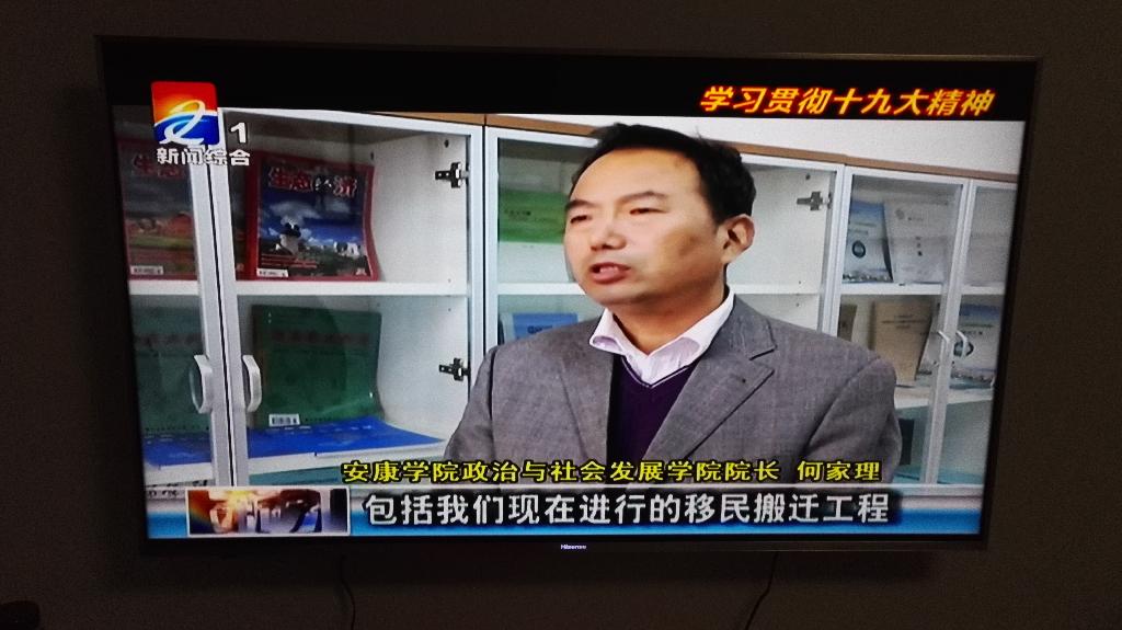 11月19日晚20:25 安康市电视台在一台“学习十九大精神专栏”中播出了采访内容。这是继十九大之后政社学院和思政部举办十九大精神展览、上报教育厅体会文章、白河农村宣讲、专题学习、学生视频采访后的又一次宣传十九大精神活动。