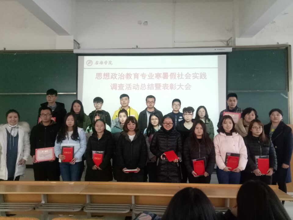 11月30日下午4点,政治与社会发展学院思想政治教育系,在安康学院江北校区1404教室,举行了思想政治教育专业寒暑假社会实践调查活动总结暨表彰大会。会议由三位指导老师罗春霞、陈皓、韩艳梅组织,思想政治教育专业2017级、2016级、2015级全体同学参加。