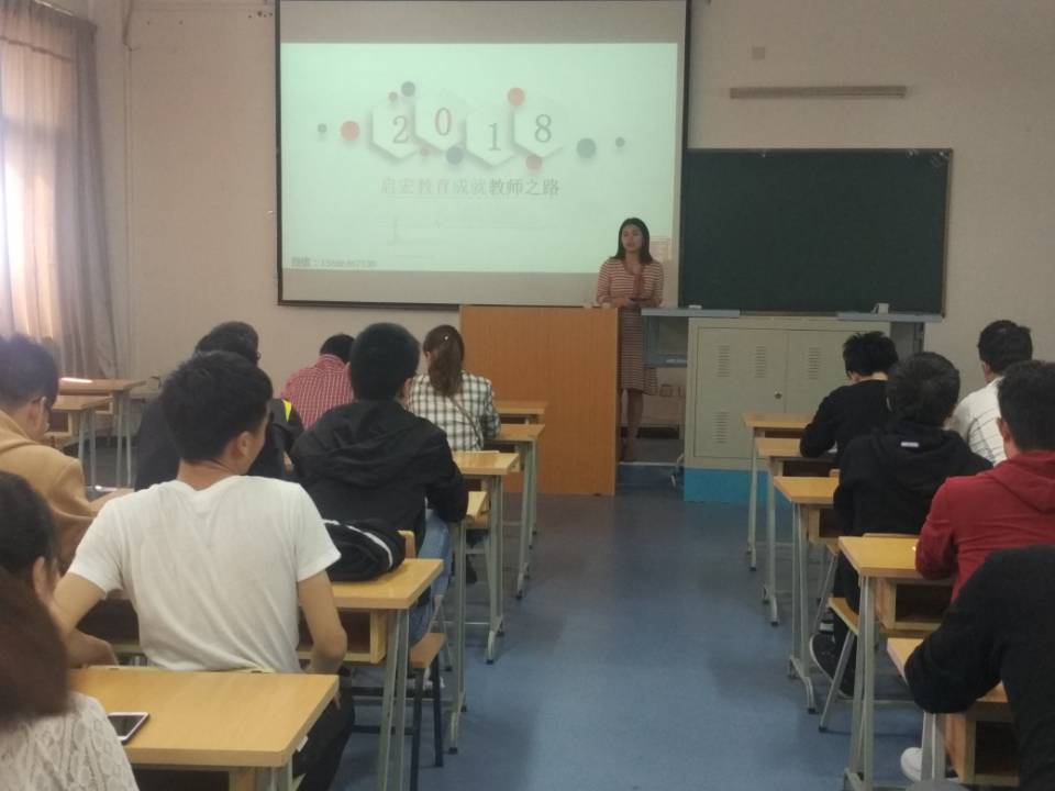 2018年3月29日下午,我院2017届毕业生汪关佩同启宏教育负责人一行在江北校区1513教室为2018届毕业生做专场招聘会。参加此次会议的有学工办主任陈卓老师及2018届40余名毕业生。