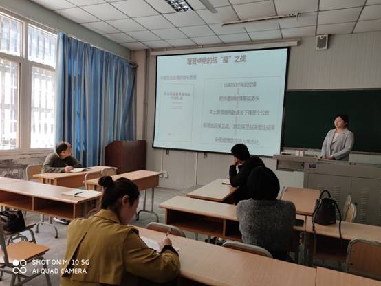 对近期工作安排进行通知后,韩艳梅同志为全体党员同志讲党课《战“疫”党旗下的同舟共济》,对新冠疫情期间党建工作进行了梳理,结合我院具体情况对疫情期间党员教师“停课不停学”的做法和精神进行了总结和赞扬,鼓励大家继续发挥党员先锋模范作用,做好教学工作。