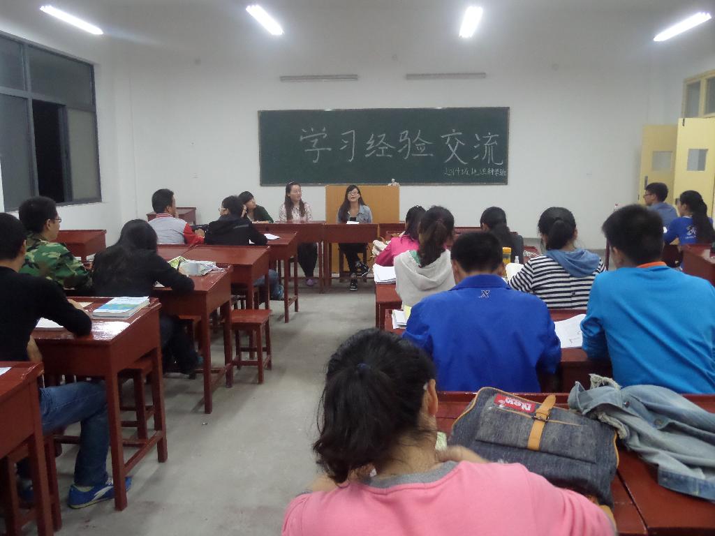 2014年10月8日晚7:30分,我系学习部在江北一号教学楼邀请2012部分级优秀学生为大一新生分专业举办了学习经验交流会,以促进同学们的学习热情,提高学习成绩,更好的完成高中向大学的转变。