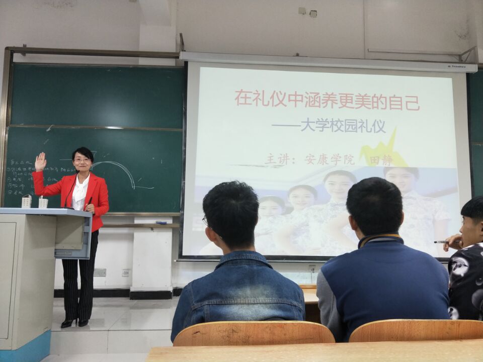 开讲之前,田静老师和同学们展望了美好的大学生活,举出了几个生活中不文明行为,由此引出了大会主题——礼仪文明。首先,田老师讲解了个人形象的构成,着重提出了拥有内涵形象的必要性。其次,田老师提出礼仪不单是行为姿势和礼仪活动的规范,随后用一段影片使同学们深入了解礼仪的重要性。最后,田老师列举了大学生活中应该拥有的礼仪行为。在热烈的掌声中,本次大会顺利结束。