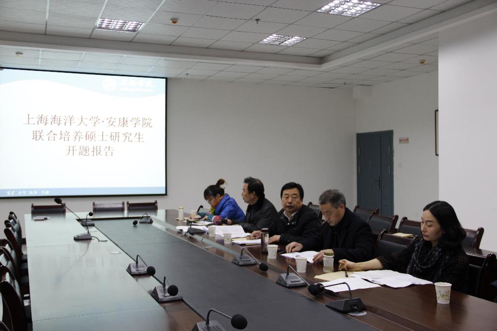 2014年12月2日下午2:30分,我校与上海海洋大学联合培养硕士研究生开题报告评议会在江北校区第一会议室召开,参加会议的有评议专家刘强教授、袁海龙教授、崔晓明教授,导师何家理教授,上海海洋大学•安康学院联合培养研究生李国玲等。